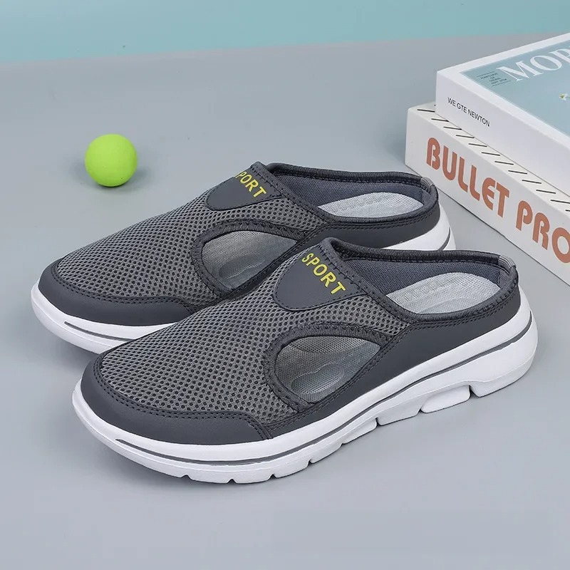 Men's mesh toe half slippers are a type of footwear designed for casual wear. They typically have a breathable mesh upper that allows for ventilation and helps keep feet cool and dry. The toe of the slipper is exposed, providing a comfortable and convenient way to slide them on and off. The half design refers to the fact that the slipper does not cover the entire foot, leaving the heel exposed. These slippers may also have a flexible and durable sole for added comfort and support.
